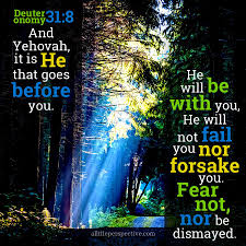 7 Then Moses summoned Joshua and said to him in the presence of all Israel, “Be strong and courageous, for you must go with this people into the land that the Lord swore to their ancestors to give them, and you must divide it among them as their inheritance. 8 The Lord himself goes before you and will be with you; he will never leave you nor forsake you. Do not be afraid; do not be discouraged.”