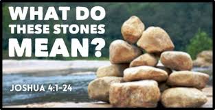 4 So Joshua called together the twelve men he had appointed from the Israelites, one from each tribe, 5 and said to them, “Go over before the ark of the Lord your God into the middle of the Jordan. Each of you is to take up a stone on his shoulder, according to the number of the tribes of the Israelites, 6 to serve as a sign among you. In the future, when your children ask you, ‘What do these stones mean?’ 7 tell them that the flow of the Jordan was cut off before the ark of the covenant of the Lord. When it crossed the Jordan, the waters of the Jordan were cut off. These stones are to be a memorial to the people of Israel forever.”