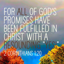 Jesus is God’s Promised Messiah proclaimed through God’s prophets who would fulfill all the promises of God!  Jesus stood in our place for our sins.  He took our sins on His shoulders and took the punishment we all deserve.  Jesus gave Himself, the one who knew no sin, and paid our debt of sin in full!  “For God so loved the world that he gave his one and only Son, that whoever believes in him shall not perish but have eternal life. For God did not send his Son into the world to condemn the world, but to save the world through him.” John 3:16-17 Our part in this fulfilled promise is to believe in Jesus and our God who sent Him with the promise of eternal life!  Our response to His promise is to “Go and teach” others of the fulfillment of all God’s promises in Jesus! (Matthew 28:20)