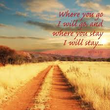“Don’t urge me to leave you or to turn back from you. Where you go I will go, and where you stay I will stay. Your people will be my people and your God my God.”—Ruth to Naomi