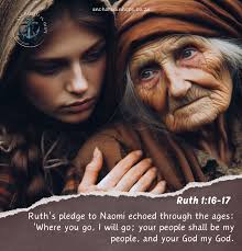 16 But Ruth replied, “Don’t urge me to leave you or to turn back from you. Where you go I will go, and where you stay I will stay. Your people will be my people and your God my God. 17 Where you die I will die, and there I will be buried. May the Lord deal with me, be it ever so severely, if even death separates you and me.” 18 When Naomi realized that Ruth was determined to go with her, she stopped urging her.