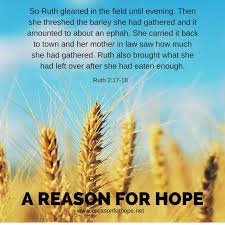 What do these thoughts have to do with Ruth meeting Boaz? Read again what Naomi said to Ruth, “He has not stopped showing his kindness to the living and the dead.” Naomi was living a dead life of paralyzing grief and bitterness. She even called herself Mara (bitter), blaming God for her misfortune to her family and friends who greeted her upon her return to her hometown with Ruth. But, because of the kindness of Boaz, she feels Hope rising from her despair.