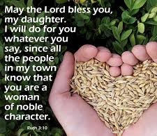 Such is the case with Naomi who loves her young, widowed daughter-in-law dearly. Naomi is now on a mission. Naomi sees a man who could be a good husband for Ruth. She selected Boaz, a relative and a good-hearted man, to be that someone who would care for Ruth, possibly even marry her, becoming her guardian-redeemer according to custom. Ruth diligently followed Naomi’s instructions and lay at the feet of Boaz at night as a servant would. Ruth’s loyalty met with Boaz’s approval. Both Ruth and Boaz were persons of high moral integrity who selflessly honored the customs and traditions of their people. This is a love story for the ages!