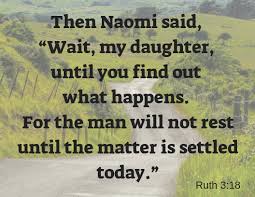 18 Then Naomi said, “Wait, my daughter, until you find out what happens. For the man will not rest until the matter is settled today.”