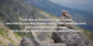 34 “‘And what happens to your two sons, Hophni and Phinehas, will be a sign to you—they will both die on the same day. 35 I will raise up for myself a faithful priest, who will do according to what is in my heart and mind. I will firmly establish his priestly house, and they will minister before my anointed one always. 36 Then everyone left in your family line will come and bow down before him for a piece of silver and a loaf of bread and plead, “Appoint me to some priestly office so I can have food to eat.”’”