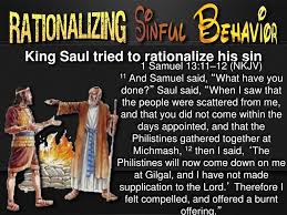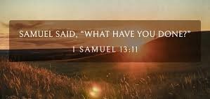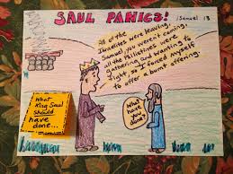 But King Saul grew tired of waiting for Samuel to instruct him about the battle at hand. Samuel delayed, and Saul’s men began to desert. Saul, in panic which leads to fool hardy actions, he did the unthinkable—took Samuel’s place as priest and offered a sacrifice to the Lord only to seek God’s good favor in battle. Saul took the situation into his own hands.