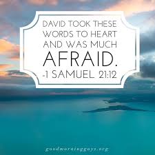 12 David took these words to heart and was very much afraid of Achish king of Gath. 13 So he pretended to be insane in their presence; and while he was in their hands he acted like a madman, making marks on the doors of the gate and letting saliva run down his beard.