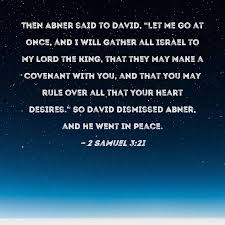 Abner comes to David to make peace with a bonus. Abner, a man of influence, promises to command all who followed him and the house of Saul to now follow and be loyal to the house of David! We admire Abner for this act of noble character. However, read what happens next!