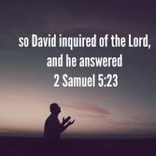 22 Once more the Philistines came up and spread out in the Valley of Rephaim; 23 so David inquired of the Lord, and he answered, “Do not go straight up, but circle around behind them and attack them in front of the poplar trees. 24 As soon as you hear the sound of marching in the tops of the poplar trees, move quickly, because that will mean the Lord has gone out in front of you to strike the Philistine army.” 25 So David did as the Lord commanded him, and he struck down the Philistines all the way from Gibeon to Gezer.