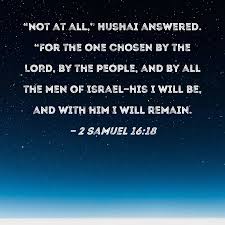 18 Hushai said to Absalom, “No, the one chosen by the Lord, by these people, and by all the men of Israel—his I will be, and I will remain with him. 19 Furthermore, whom should I serve? Should I not serve the son? Just as I served your father, so I will serve you.”