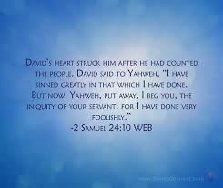 10 David was conscience-stricken after he had counted the fighting men, and he said to the Lord, “I have sinned greatly in what I have done. Now, Lord, I beg you, take away the guilt of your servant. I have done a very foolish thing.”