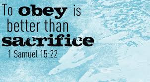 “Does the Lord delight in burnt offerings and sacrifices as much as in obeying the Lord? To obey is better than sacrifice, and to heed is better than the fat of rams.” 1 Samuel 15:22