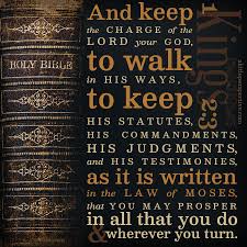2 “I am about to go the way of all the earth,” he said. “So be strong, act like a man, 3 and observe what the Lord your God requires: Walk in obedience to him, and keep his decrees and commands, his laws and regulations, as written in the Law of Moses. Do this so that you may prosper in all you do and wherever you go 4 and that the Lord may keep his promise to me: ‘If your descendants watch how they live, and if they walk faithfully before me with all their heart and soul, you will never fail to have a successor on the throne of Israel.’