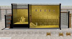 31 For the entrance to the inner sanctuary he made doors out of olive wood that were one fifth of the width of the sanctuary. 32 And on the two olive-wood doors he carved cherubim, palm trees and open flowers, and overlaid the cherubim and palm trees with hammered gold. 33 In the same way, for the entrance to the main hall he made doorframes out of olive wood that were one fourth of the width of the hall. 34 He also made two doors out of juniper wood, each having two leaves that turned in sockets. 35 He carved cherubim, palm trees and open flowers on them and overlaid them with gold hammered evenly over the carvings.