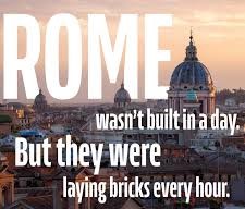 “Rome wasn’t built in a day” is a phrase still today to mean that important achievements, complex projects, or great things take time, patience, and consistent effort to complete and cannot be rushed. The phrase serves as a reminder to be patient when things are not progressing as quickly as desired and that significant accomplishments require a long-term commitment.