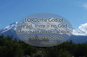 “Lord, the God of Israel, there is no God like you in heaven above or on earth below—you who keep your covenant of love with your servants who continue wholeheartedly in your way. 24 You have kept your promise to your servant David my father; with your mouth you have promised and with your hand you have fulfilled it—as it is today.
