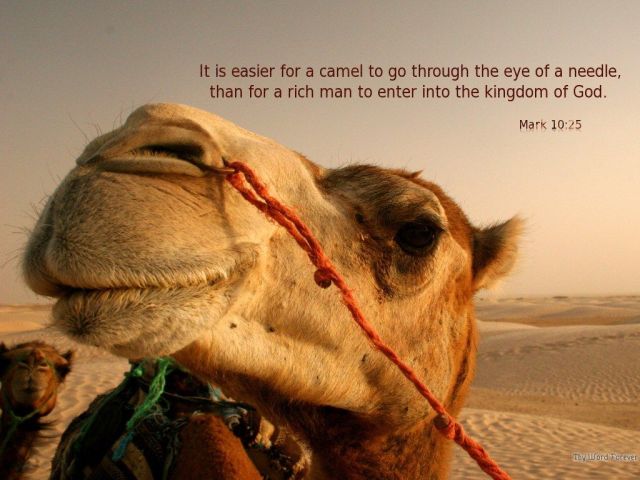 Matthew (19:24) and Mark (10:25), and Luke (18:25), record these words of Jesus; “It is easier for a camel to go through the eye of a needle than for a rich person to enter the Kingdom of God”. This is a powerful simile emphasizing the extreme difficulty, not impossibility, for someone who is self-reliant due to wealth to humble themselves and let God be their priority. God owns all we have been given to manage. When we turn from God, we turn from His wisdom to steward well.