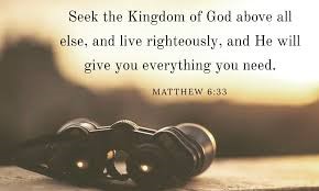Jesus teaches, Seek God first—always and in all circumstances— “and all these things will be added to you.” Matthew 6:33. Jesus instructs believers who follow Him to make the Kingdom of God and God’s righteousness their highest priority in life. It means entrusting your life to God, prioritizing a relationship with Him, while fully believing He will provide for your needs as you live according to His will.