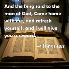 7 The king said to the man of God, “Come home with me for a meal, and I will give you a gift.”