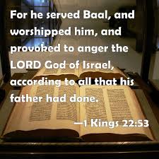 51 Ahaziah son of Ahab became king of Israel in Samaria in the seventeenth year of Jehoshaphat king of Judah, and he reigned over Israel two years. 52 He did evil in the eyes of the Lord, because he followed the ways of his father and mother and of Jeroboam son of Nebat, who caused Israel to sin. 53 He served and worshiped Baal and aroused the anger of the Lord, the God of Israel, just as his father had done.