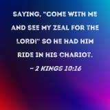 “If so,” said Jehu, “give me your hand.” So he did, and Jehu helped him up into the chariot. 16 Jehu said, “Come with me and see my zeal for the Lord.” Then he had him ride along in his chariot.