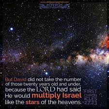 23 David did not take the number of the men twenty years old or less, because the Lord had promised to make Israel as numerous as the stars in the sky. 24 Joab son of Zeruiah began to count the men but did not finish. God’s wrath came on Israel on account of this numbering, and the number was not entered in the book of the annals of King David.