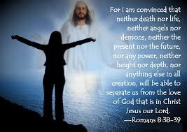 And I am convinced that nothing can ever separate us from God’s love. Neither death nor life, neither angels nor demons, neither our fears for today nor our worries about tomorrow—not even the powers of hell can separate us from God’s love. No power in the sky above or in the earth below—indeed, nothing in all creation will ever be able to separate us from the love of God that is revealed in Christ Jesus our Lord.” Romans 8:33-39