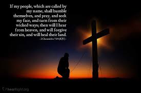 13 “When I shut up the heavens so that there is no rain, or command locusts to devour the land or send a plague among my people, 14 if my people, who are called by my name, will humble themselves and pray and seek my face and turn from their wicked ways, then I will hear from heaven, and I will forgive their sin and will heal their land. 15 Now my eyes will be open and my ears attentive to the prayers offered in this place. 16 I have chosen and consecrated this temple so that my Name may be there forever. My eyes and my heart will always be there.