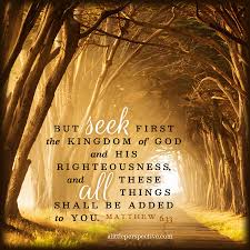 “But seek first the kingdom of God and his righteousness, and all these things will be added to you.”—Jesus, Matthew 6:33 ESV
