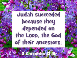 13 Now Jeroboam had sent troops around to the rear, so that while he was in front of Judah the ambush was behind them. 14 Judah turned and saw that they were being attacked at both front and rear. Then they cried out to the Lord. The priests blew their trumpets 15 and the men of Judah raised the battle cry. At the sound of their battle cry, God routed Jeroboam and all Israel before Abijah and Judah. 16 The Israelites fled before Judah, and God delivered them into their hands. 17 Abijah and his troops inflicted heavy losses on them, so that there were five hundred thousand casualties among Israel’s able men. 18 The Israelites were subdued on that occasion, and the people of Judah were victorious because they relied on the Lord, the God of their ancestors.