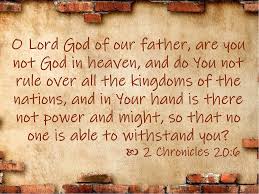 “Lord, the God of our ancestors, are you not the God who is in heaven? In the classroom of life, the Master Teacher is indeed in control and has not given up His authority. Even when we don’t feel it or see it—God has everything under control.