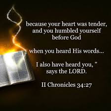 23 She said to them, “This is what the Lord, the God of Israel, says: Tell the man who sent you to me, 24 ‘This is what the Lord says: I am going to bring disaster on this place and its people—all the curses written in the book that has been read in the presence of the king of Judah. 25 Because they have forsaken me and burned incense to other gods and aroused my anger by all that their hands have made, my anger will be poured out on this place and will not be quenched.’ 26 Tell the king of Judah, who sent you to inquire of the Lord, ‘This is what the Lord, the God of Israel, says concerning the words you heard: 27 Because your heart was responsive and you humbled yourself before God when you heard what he spoke against this place and its people, and because you humbled yourself before me and tore your robes and wept in my presence, I have heard you, declares the Lord. 28 Now I will gather you to your ancestors, and you will be buried in peace. Your eyes will not see all the disaster I am going to bring on this place and on those who live here.’”
