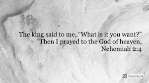 Nehemiah prayed to God while weeping over God’s people. God heard and He answered. God gave Nehemiah favor from the king he served! In fact, Nehemiah’s answer is coming before he expected it to be answered! The king sees Nehemiah’s look of distress and inquires of him first! So when the King asks what is needed; Nehemiah, maybe flustered a bit, prays again before telling the king. Ah, friends if only we would learn to pray first before speaking; we would avoid a lot of troubling miscommunications with others, right? Nehemiah is one who prays to seek the Lord’s wisdom and help before doing anything of significance. God’s Son did that, too! How beautiful it is when God’s people asked for God’s help first before jumping—to human plans, ministry projects, along with jumping to conclusions of what we think others think! Prayer is vital in our walk with God who is our Life Source!