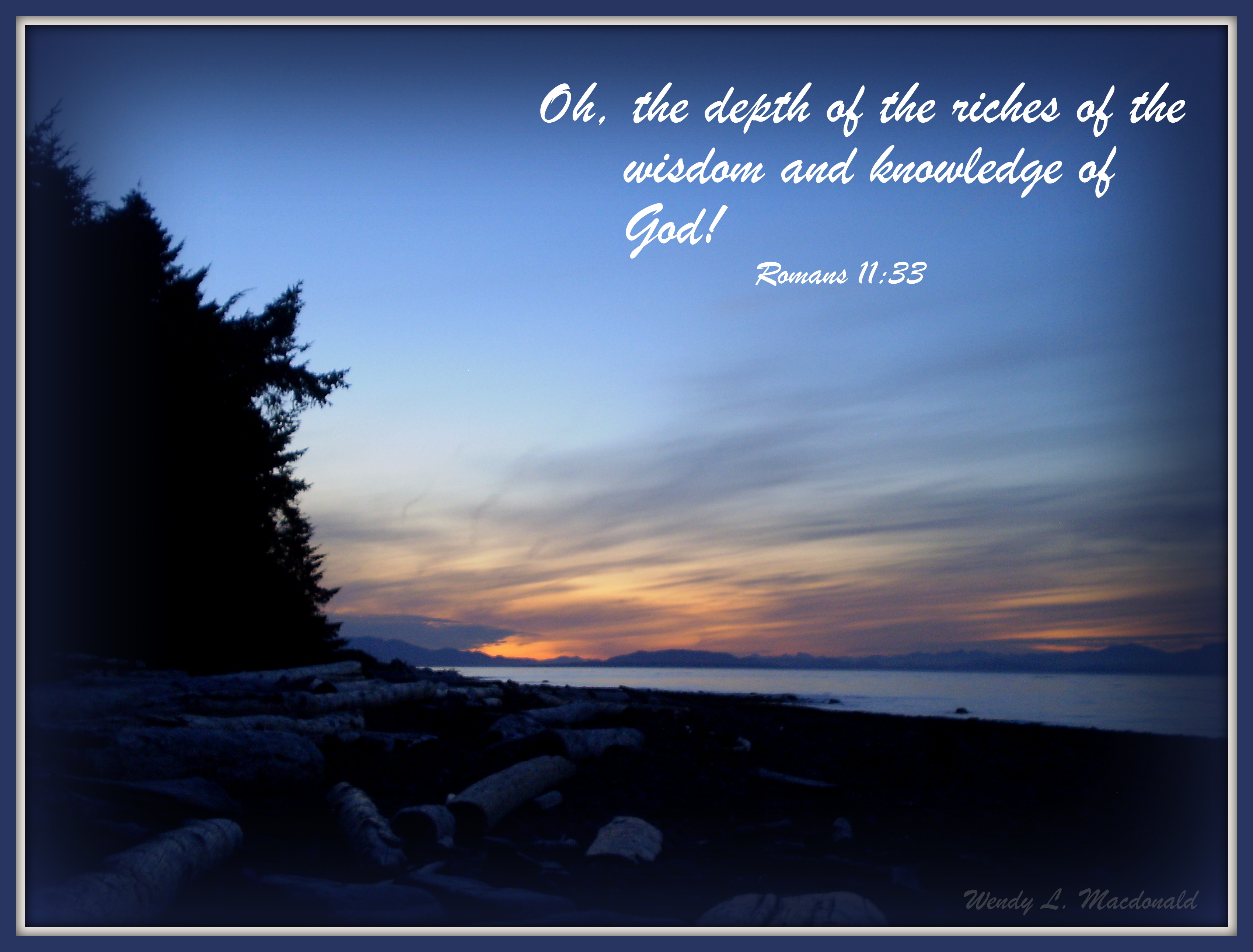 - “Oh, the depth of the riches and wisdom and knowledge of God! How unsearchable are his judgments and how inscrutable his ways! For who has known the mind of the Lord, or who has been his counselor? Or who has given a gift to him that he might be repaid?”—Paul, Romans 11:33-35