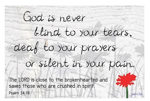 Memorize verses 17 through 22 of Psalm 34. Repeat them to yourself when you need a reminder that God is right beside you.